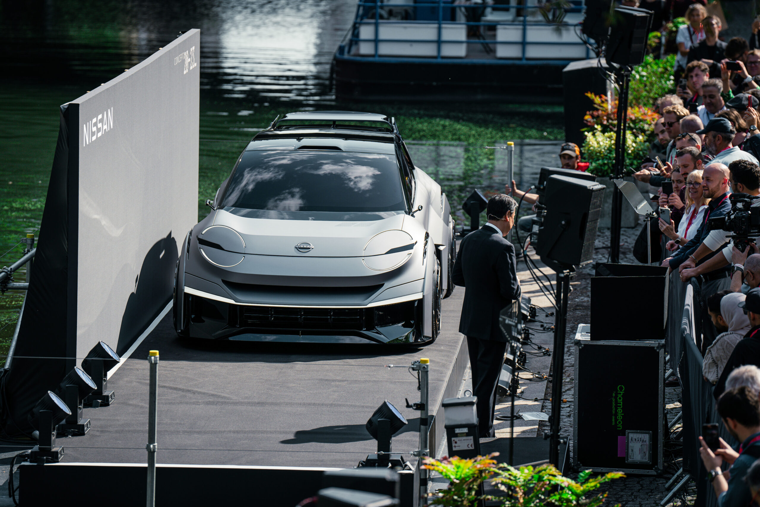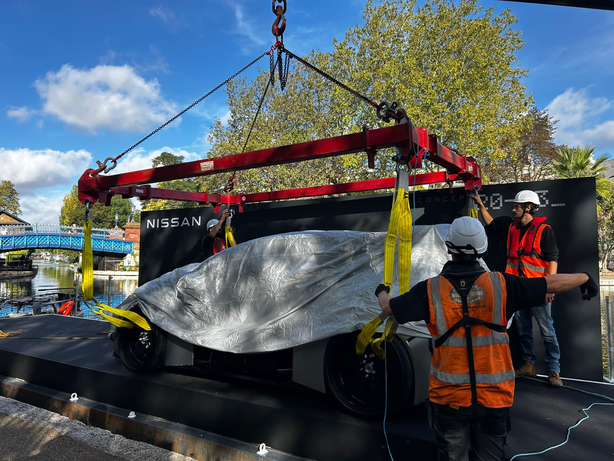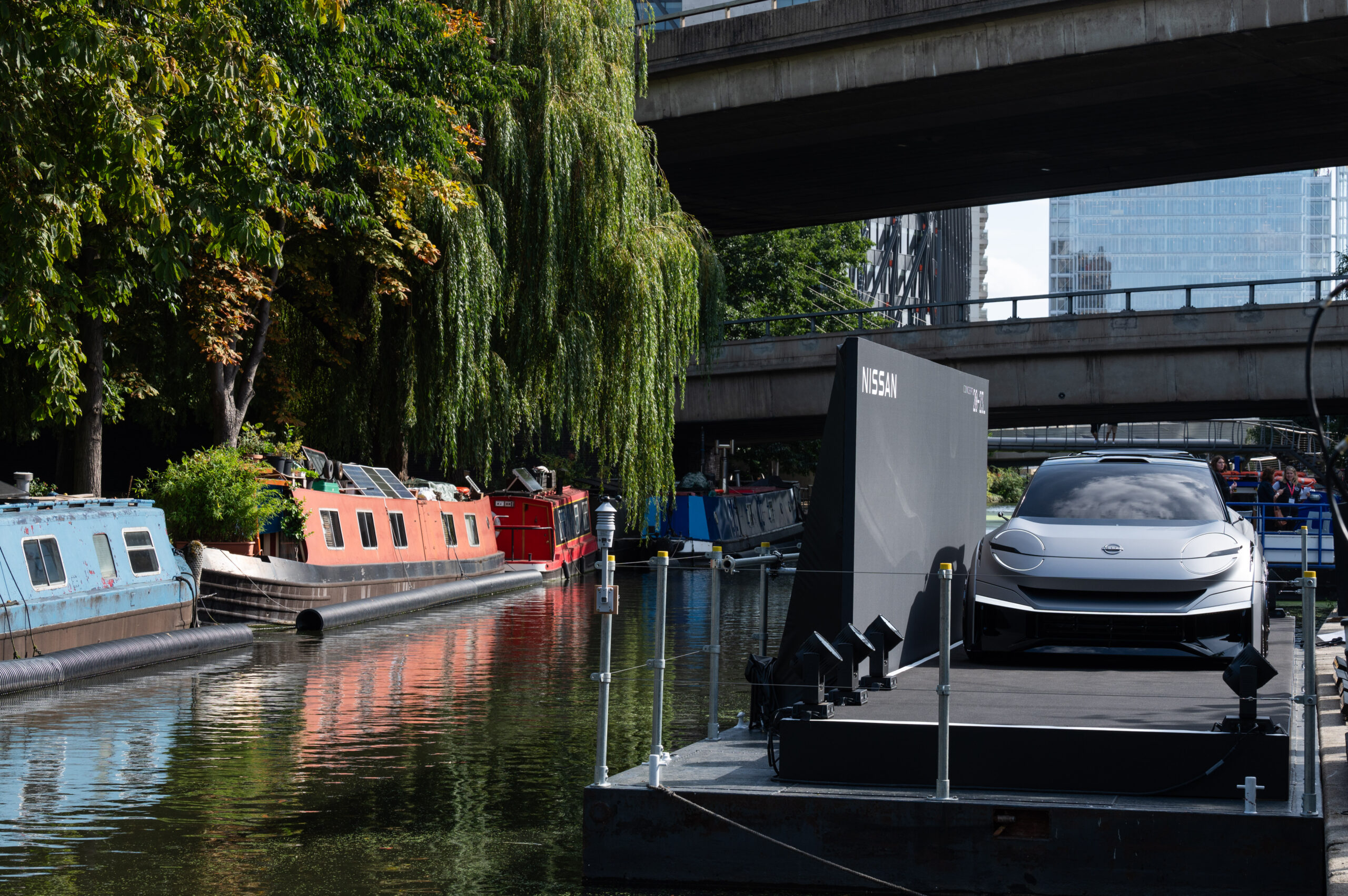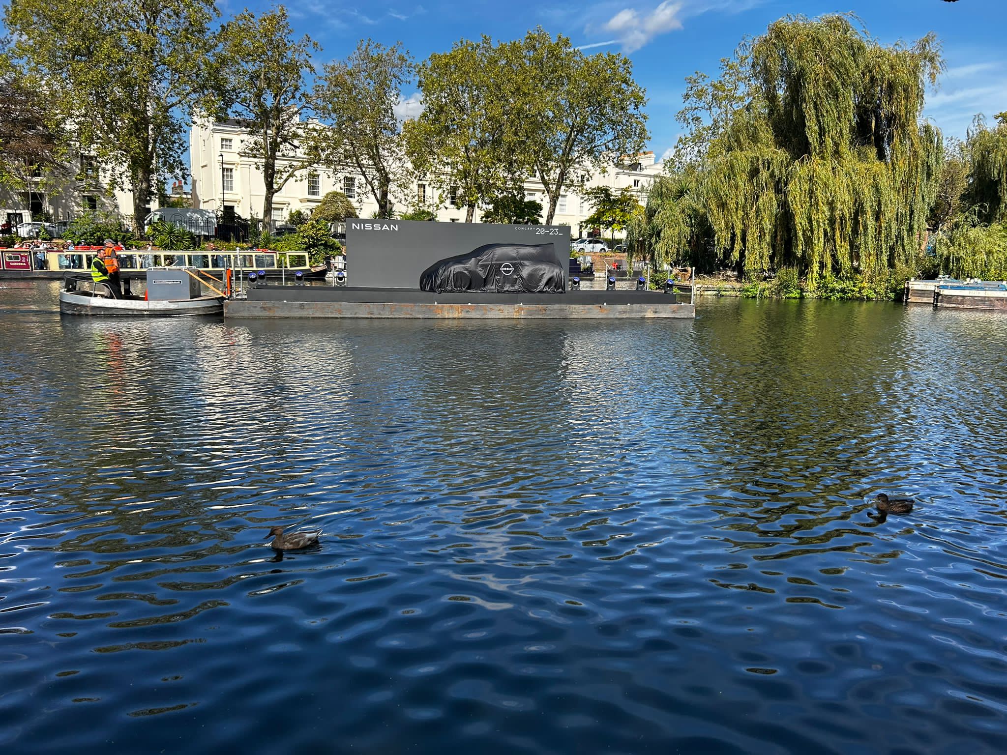 Their daring vision was led by Neil Reeve, Manager, Product Communications at Nissan AMIEO and was driven by Nissan’s founding principle of “Dare to do what others don’t”. I certainly think most manufacturers wouldn’t be brave enough to float a model that was only completed on Friday evening, down the Grand Union Canal in Central London and into a live show for 120 VIPs and journalists on a Monday lunchtime.